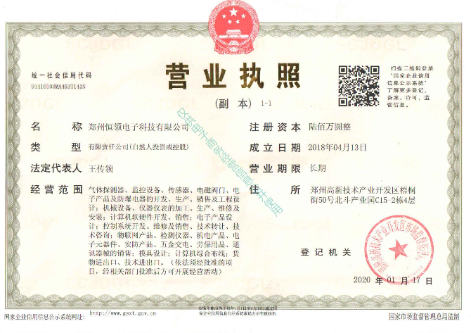 鄭州恒領電子科技有限公司坐落于鄭州市高新區。是專業從事氣體檢測及系統研發、生產、銷售、技術服務于一體的高新技術企業。公司具有完善的研發、品質管控流程體系。公司擁有一支多年從事氣體檢測儀器儀表開發的專業化團隊,研制出了技術成熟的氣體檢測儀表及系統集成設備。主營業務產品:智能型氣體探測器、便攜式氣體檢測儀、氣體控制器等環境監控儀器開發、生產、銷售及智慧城市方案、安全生產綜合生產平臺、企業級綜合信息管理應急平臺的開發。公司已通過公司已通過ISO9001質量體系認證、ISO14001環境管理體系認證證書...